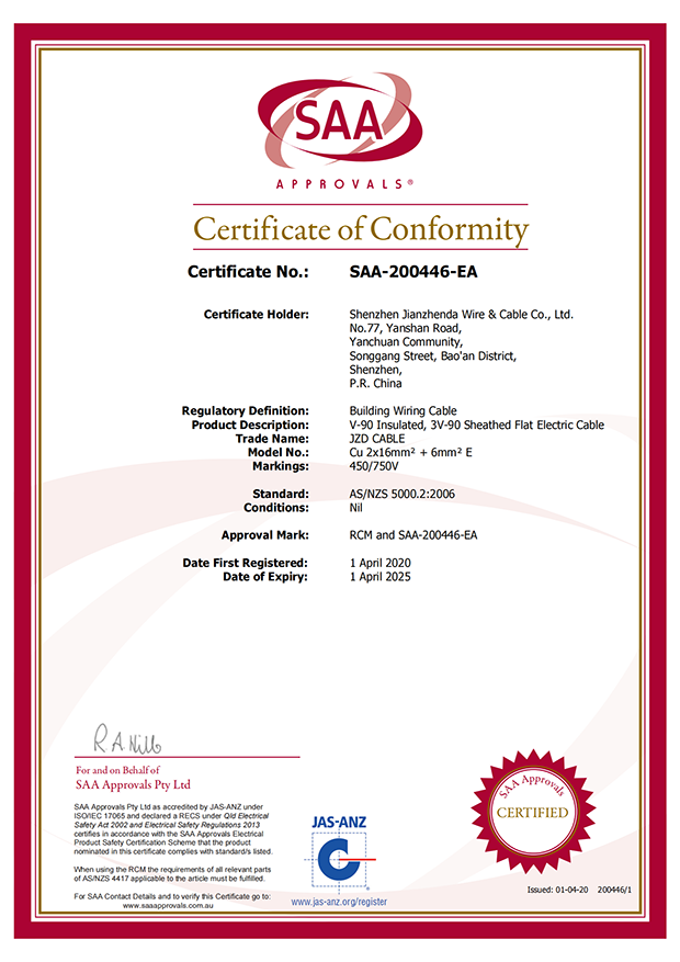 深圳建圳達電線電纜有限公司,成立于2000年,是一家電線電纜制造商,我們通過了世界各地不同市場的多數認證,如:CCC、RoHS、CB、SAA、TUV、VDE、PSE、BPS、UL、CSA。我們根據定制產品不斷更新新的認證。經過數十年的發(fā)展,我們與來自世界各地的客戶建立了長期的合作關系。我們曾經是菲律賓機場,,柬埔寨的電力站,美國的醫院,工廠,埃塞俄比亞的水電站項目。我們是一家值得信賴的電線供應商。